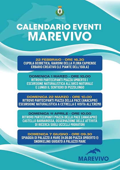 Programma di appuntamenti dedicati alla natura e alla tutela dell’ambiente sull’isola di Capri, tra escursioni naturalistiche, attività educative e snorkeling guidato alla scoperta del territorio e del mare. Iniziative organizzate da Marevivo con il patrocinio del Comune di Capri.