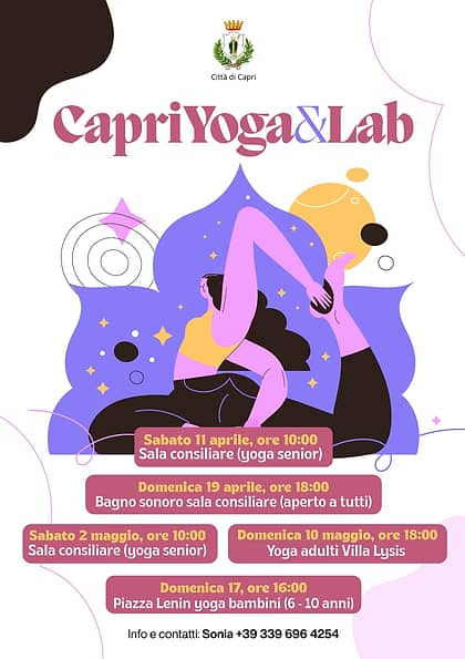 Ciclo di incontri dedicati allo yoga e al benessere, con attività rivolte a diverse fasce di età tra cui yoga senior, yoga per adulti e yoga per bambini, oltre a esperienze di rilassamento come il bagno sonoro. Gli appuntamenti si svolgeranno in diverse location dell’isola, offrendo momenti di pratica, condivisione e cura del corpo e della mente.