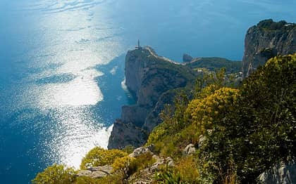 Giunti alla fine del sentiero il panorama dolce e riposante muta radicalmente: davanti soltanto una distesa sconfinata di mare e un precipitare di rocce bianche e appuntite che arrivano fino alla Cala del Limmo e al Faro di Punta Carena. Abitanti di questi luoghi solo i gabbiani che, ad ali spiegate, volano sfruttando le correnti d'aria.